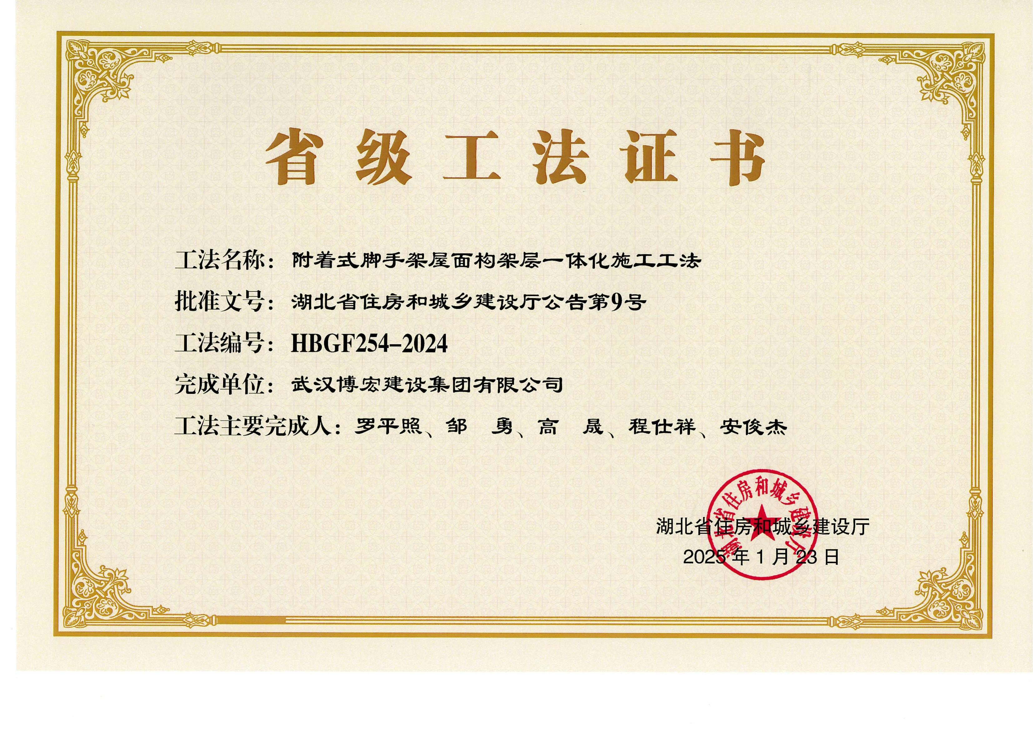 2025湖北省市政程協(xié)會-研發(fā)爬架屋面架構層一體化施工新工藝