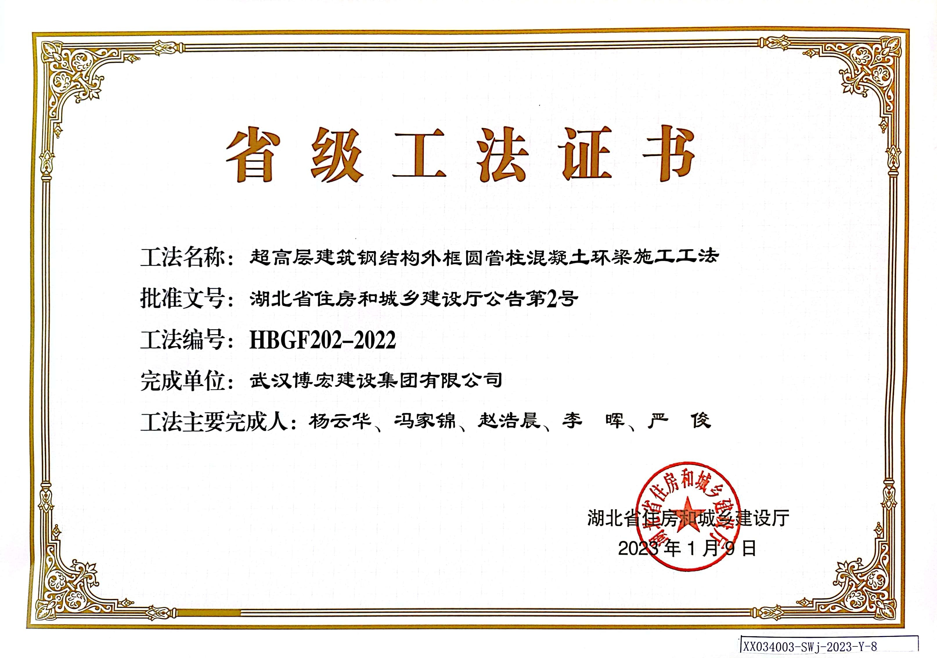 2023年湖北省住房和城鄉建設廳-超高層建筑鋼結構外框圓管柱混凝土環梁施工工法