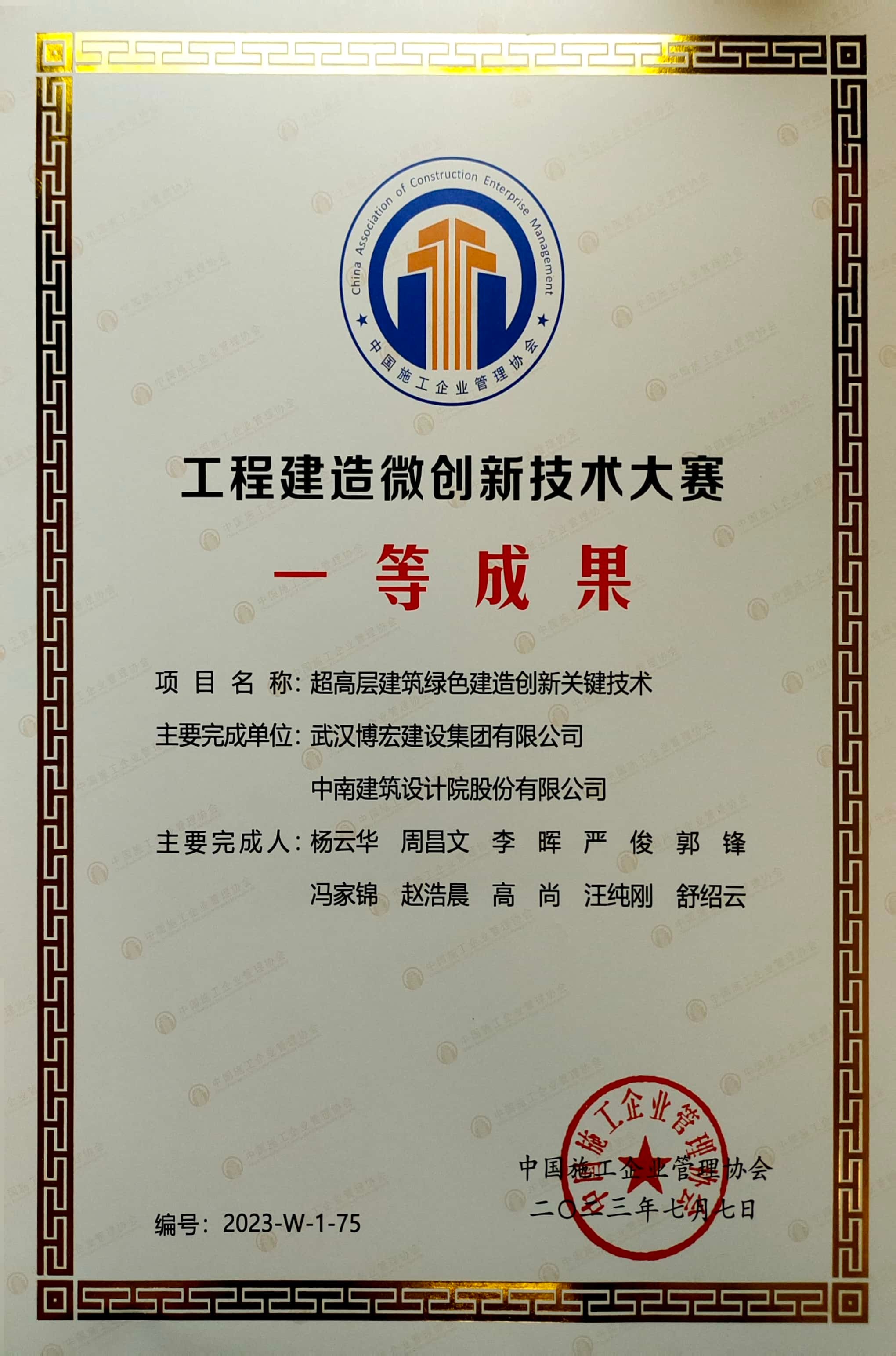 2023年中國施工管理企業協會-超高層建筑綠色建造創新關鍵技術-工程建造微創新技術大賽一等成果