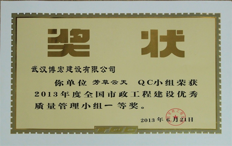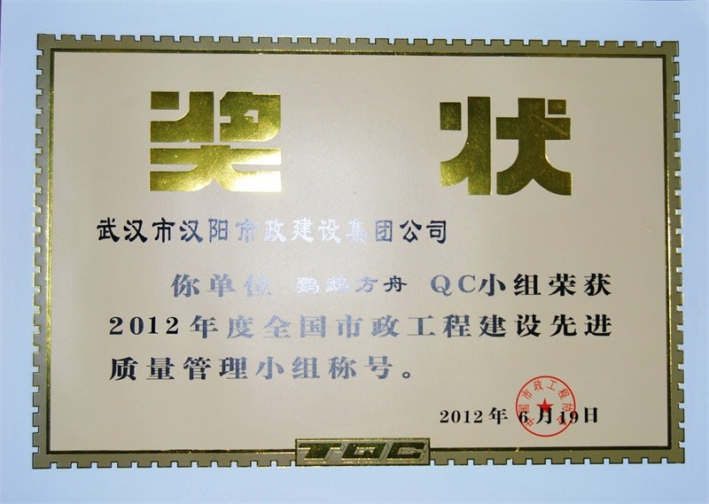 2012年度全國市政工程建設QC小組活動優秀企業