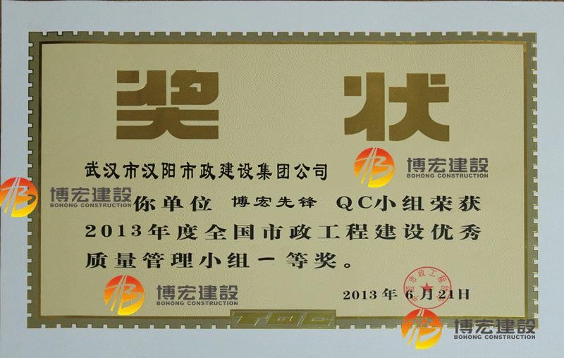 2012年度全國市政工程建設先進質量管理小組