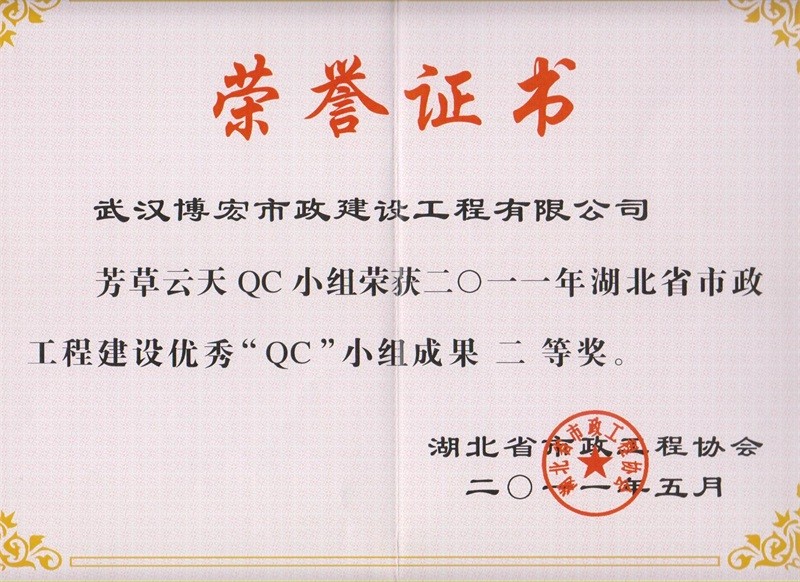2012年度全國市政工程建設(shè)先進(jìn)質(zhì)量管理小組