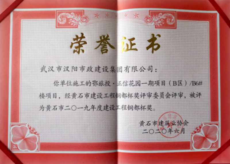 2019年度建設工程銅都杯獎(鄂旅投·正信花園一期項目(B區)B6#樓項目