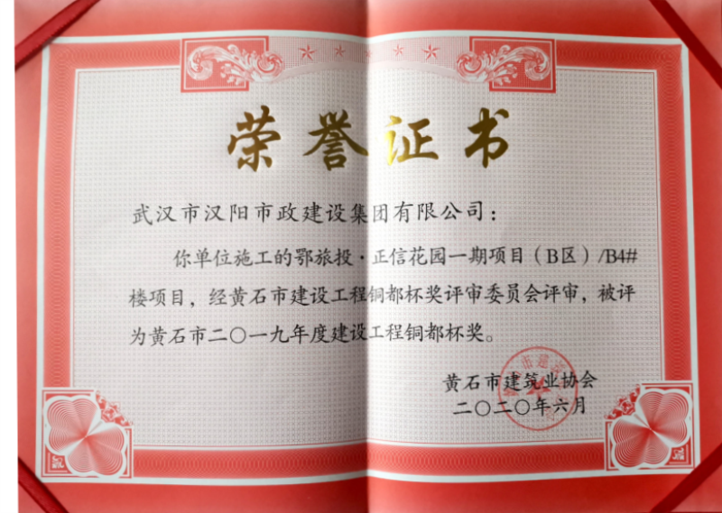 2019年度建設工程銅都杯獎(鄂旅投·正信花園一期項目(B區)B4#樓項目