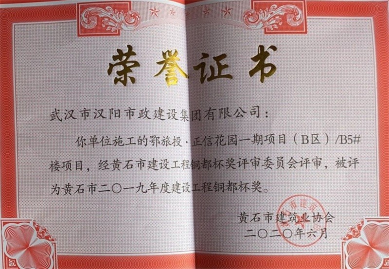 2019年度建設工程銅都杯獎(鄂旅投·正信花園一期項目(B區)B5#樓項目項目
