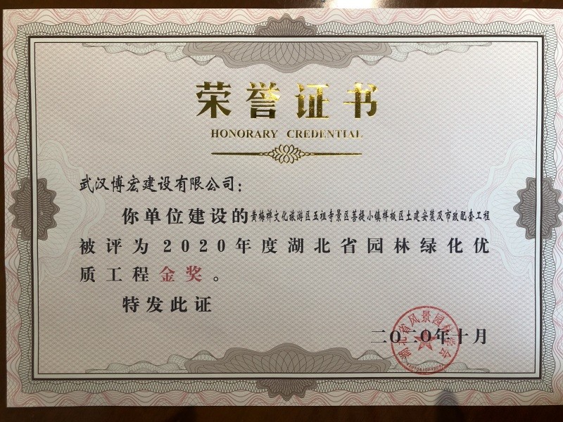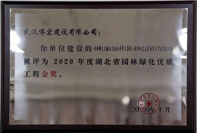 2020湖北省城市園林綠化優質工程金獎獎狀