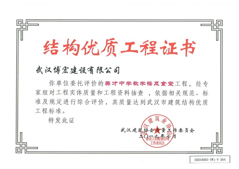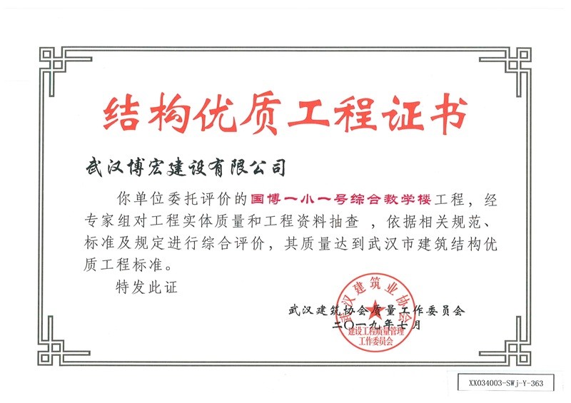 結構優質工程證書(鸚鵡洲小學教學樓)