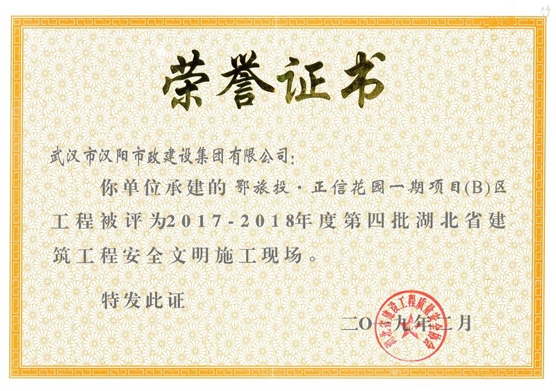 2017-2018年度第四批湖北省建筑工程安全文明施工現場(正信花園)