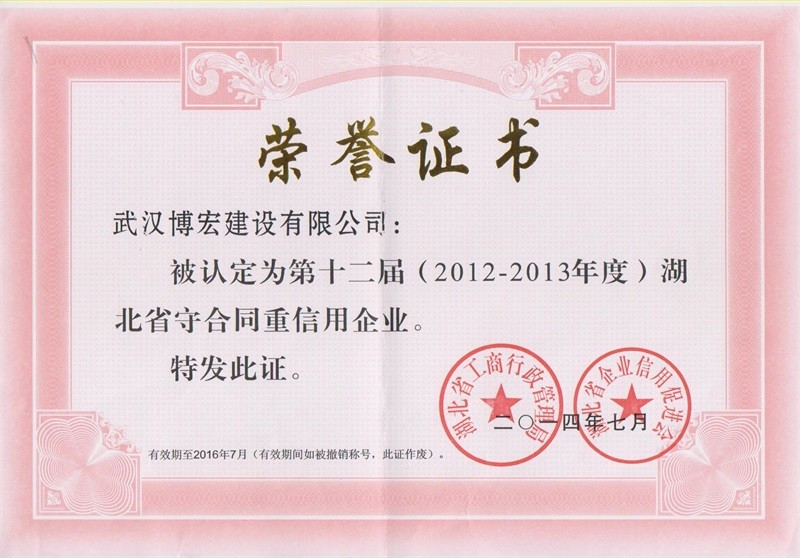 武漢地區(qū)建筑業(yè)企業(yè)信用等級(jí)證書(shū)