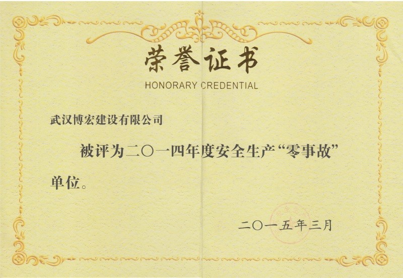 2013年度武漢地區(qū)市政行業(yè)企業(yè)信譽(yù)等級(jí)證書(shū)