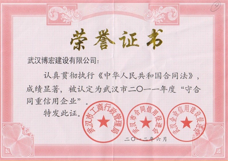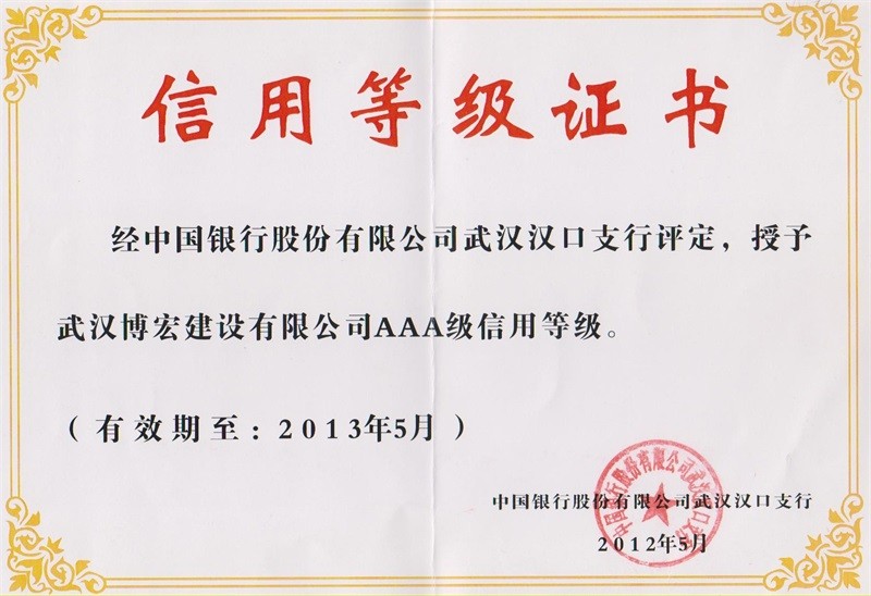 2012-2013年度武漢地區市政行業企業信譽等級證書