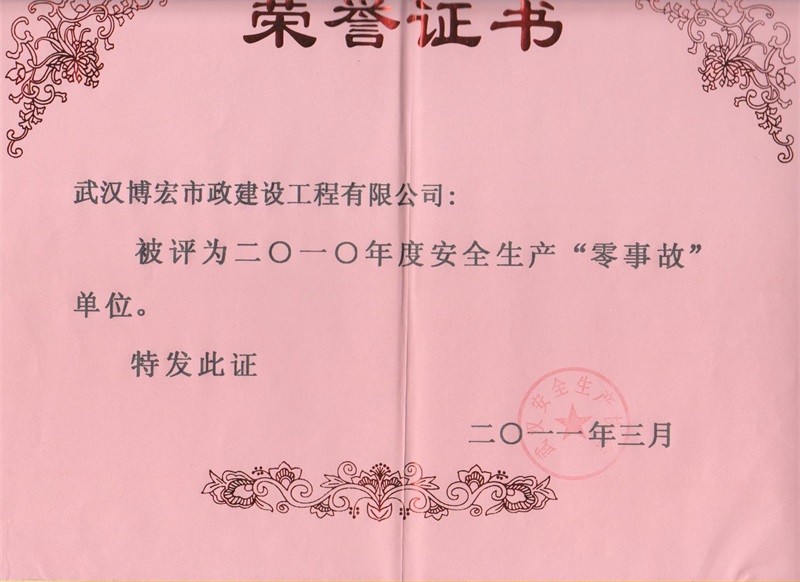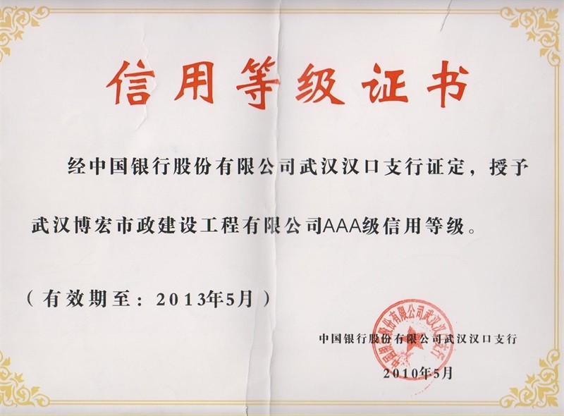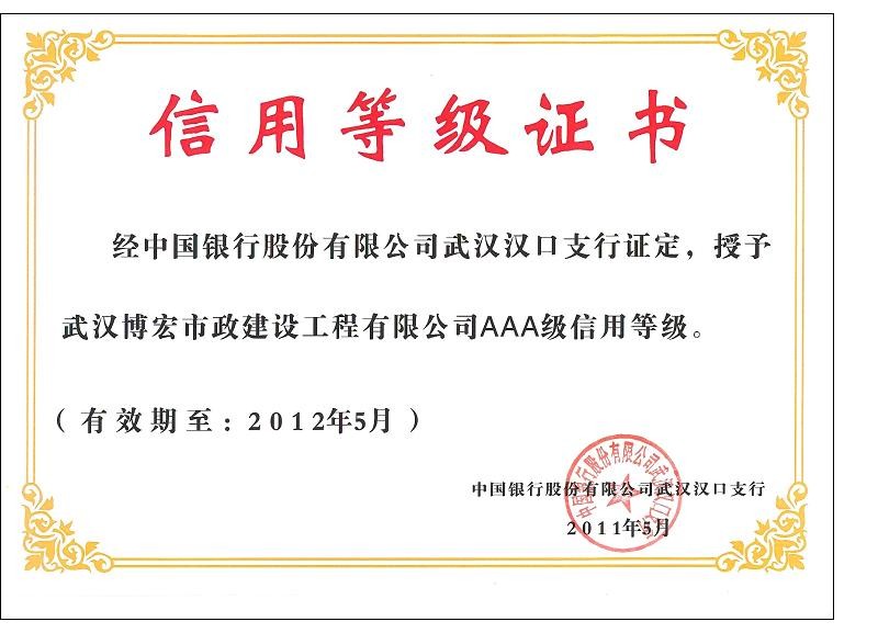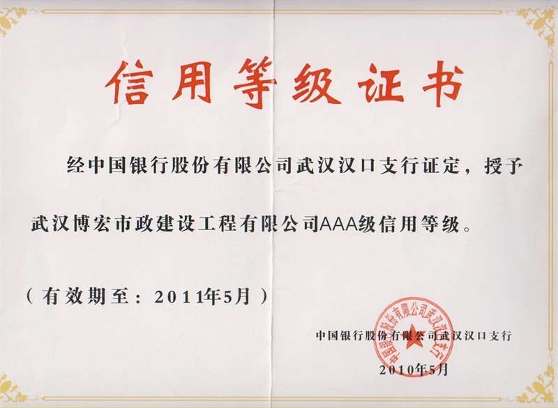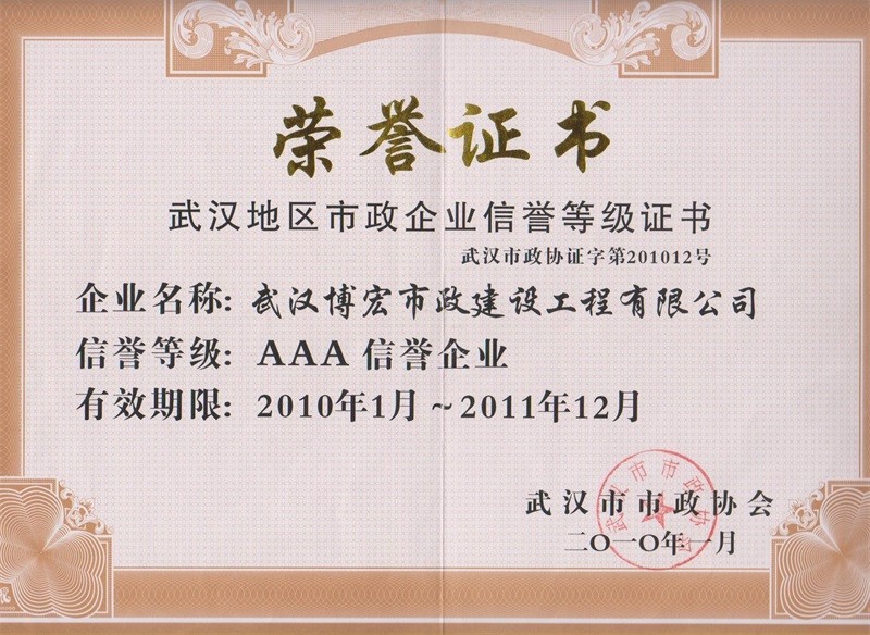 2010-2011年度武漢地區市政企業信譽等級證書