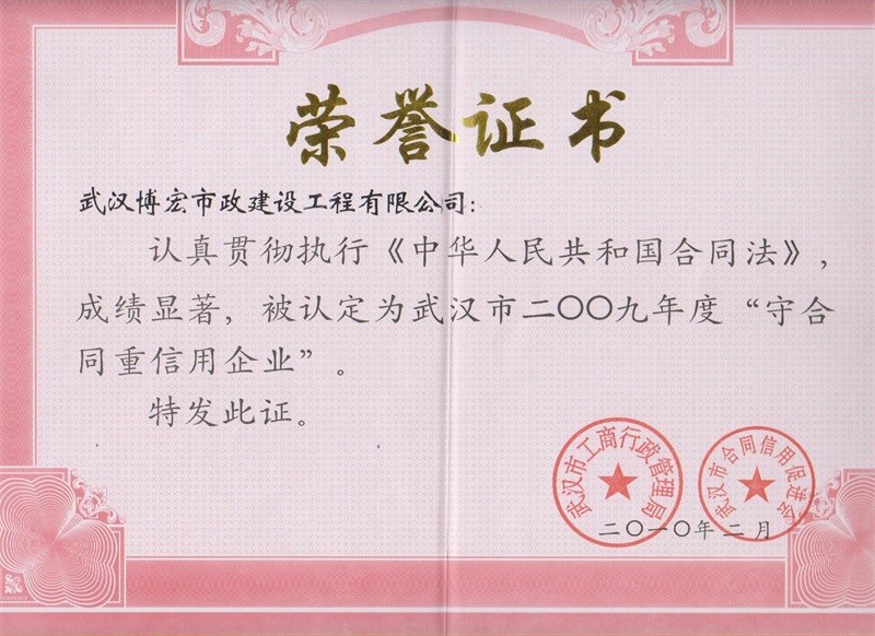 2009年度武漢市守合同重信用企業