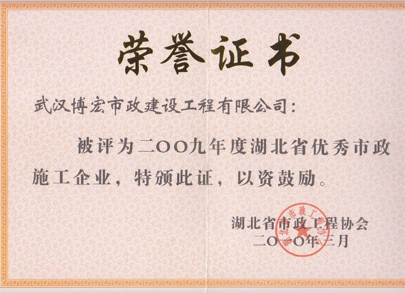 2009年度湖北省優秀市政施工企業