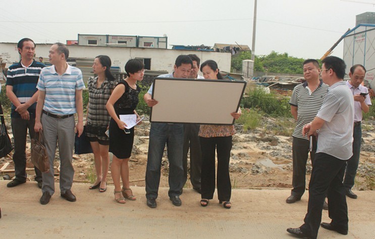 7月14日,漢陽區區政府、武漢新區公司、江堤街村委等一行在徐區長的帶領下蒞臨武漢市漢陽區社會福利院工程視察施工進展情況,漢陽市政胡總及天創房地產公司張經理進行陪同。