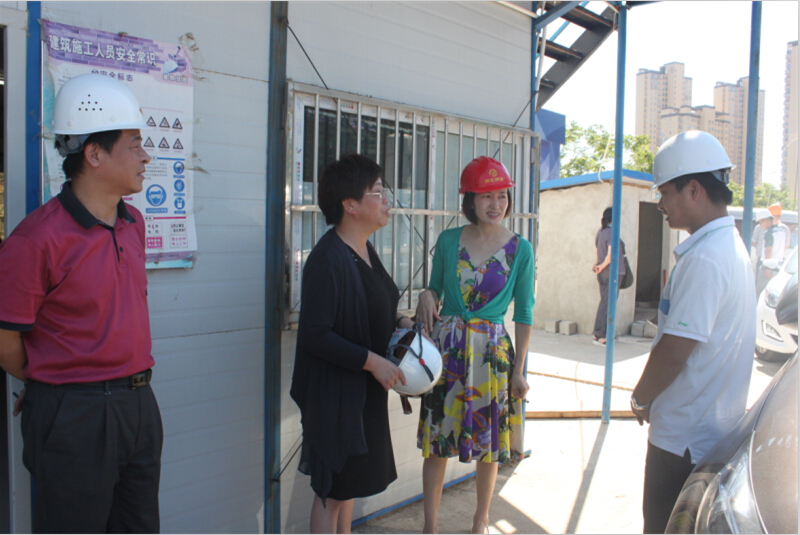 在現場,博宏建設黨支部書記周紅向喻主席、謝主任詳細介紹了芳草小學建設基本情況和職工工作生活情況,了解到施工單位為避開中午最高溫時段,對作息時間進行了適當調整,中午時間不安排建設者在室外作業,對此喻主席表示贊許。她還向工地負責人建議,當前天氣炎熱,在外作業一定要勞逸結合、防止中暑。