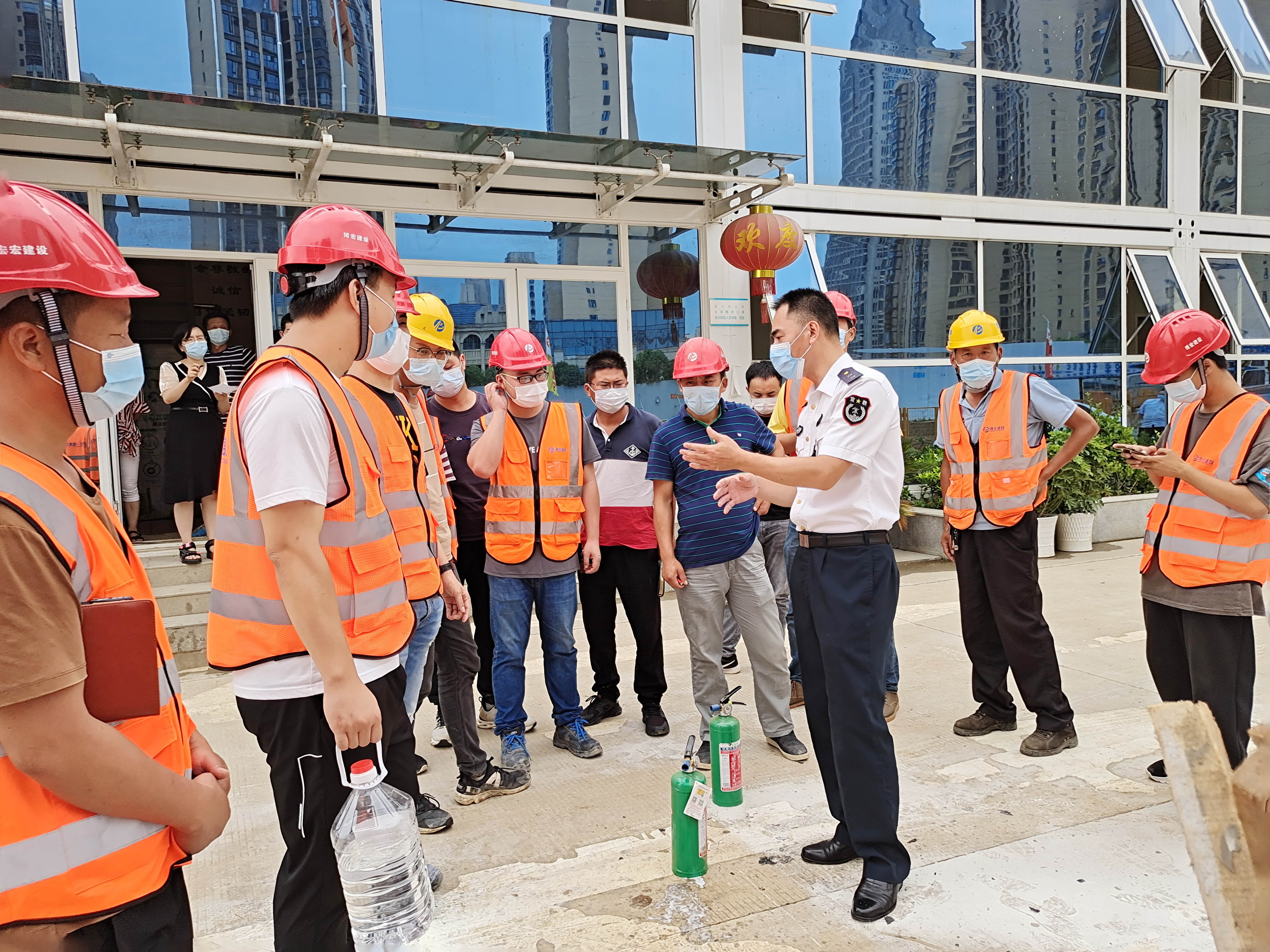 演練中,公司邀請到湖北省楚安防火宣教中心謝小秋教官來到項目現場進行了消防安全知識講解。期間,重點介紹了各類滅火器的使用方法和適用場景,并現場進行了演示。