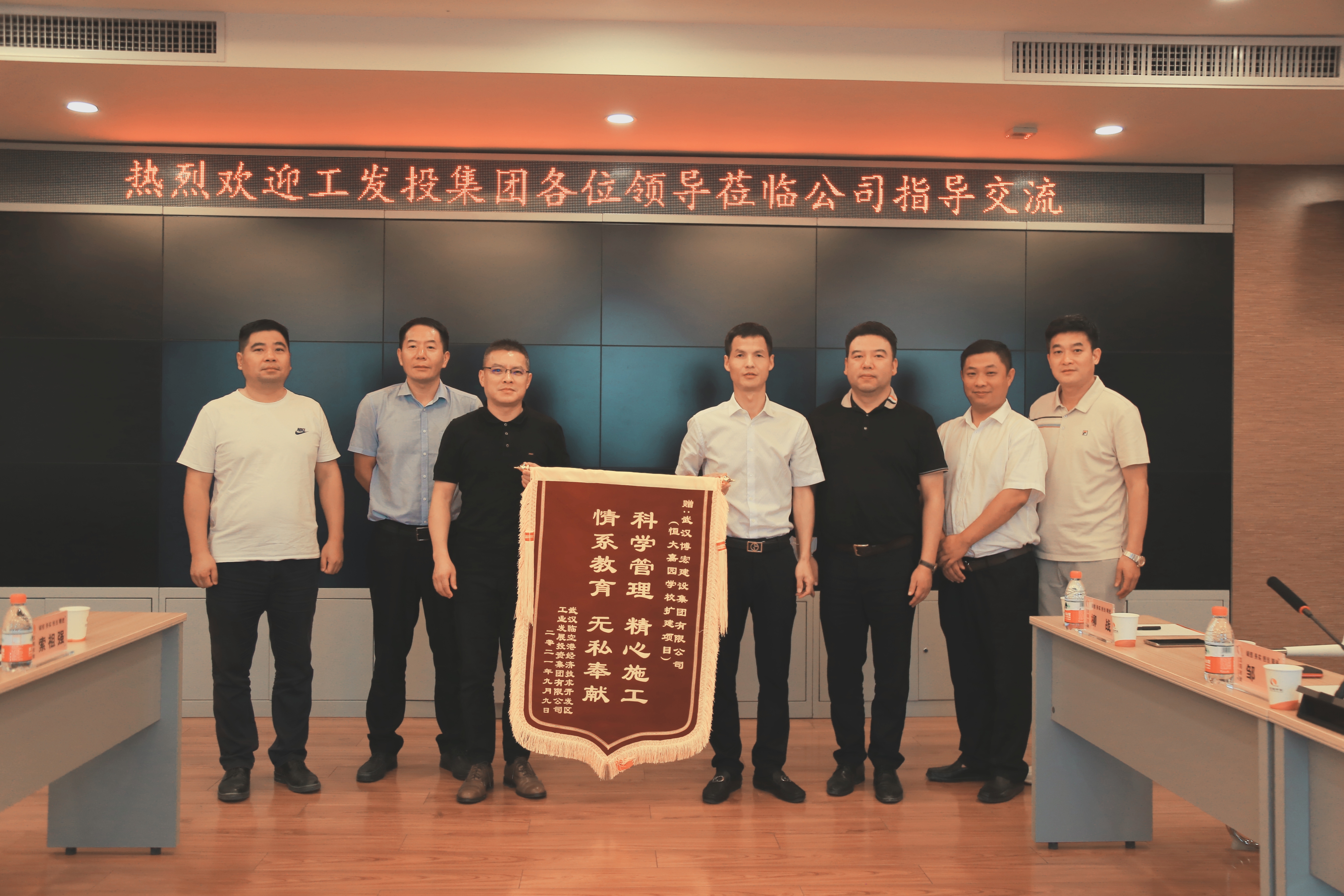 最后,工發(fā)投集團(tuán)總經(jīng)理向漢陽(yáng)市政與漢陽(yáng)市政博宏公司分別授予錦旗,并合影留念。