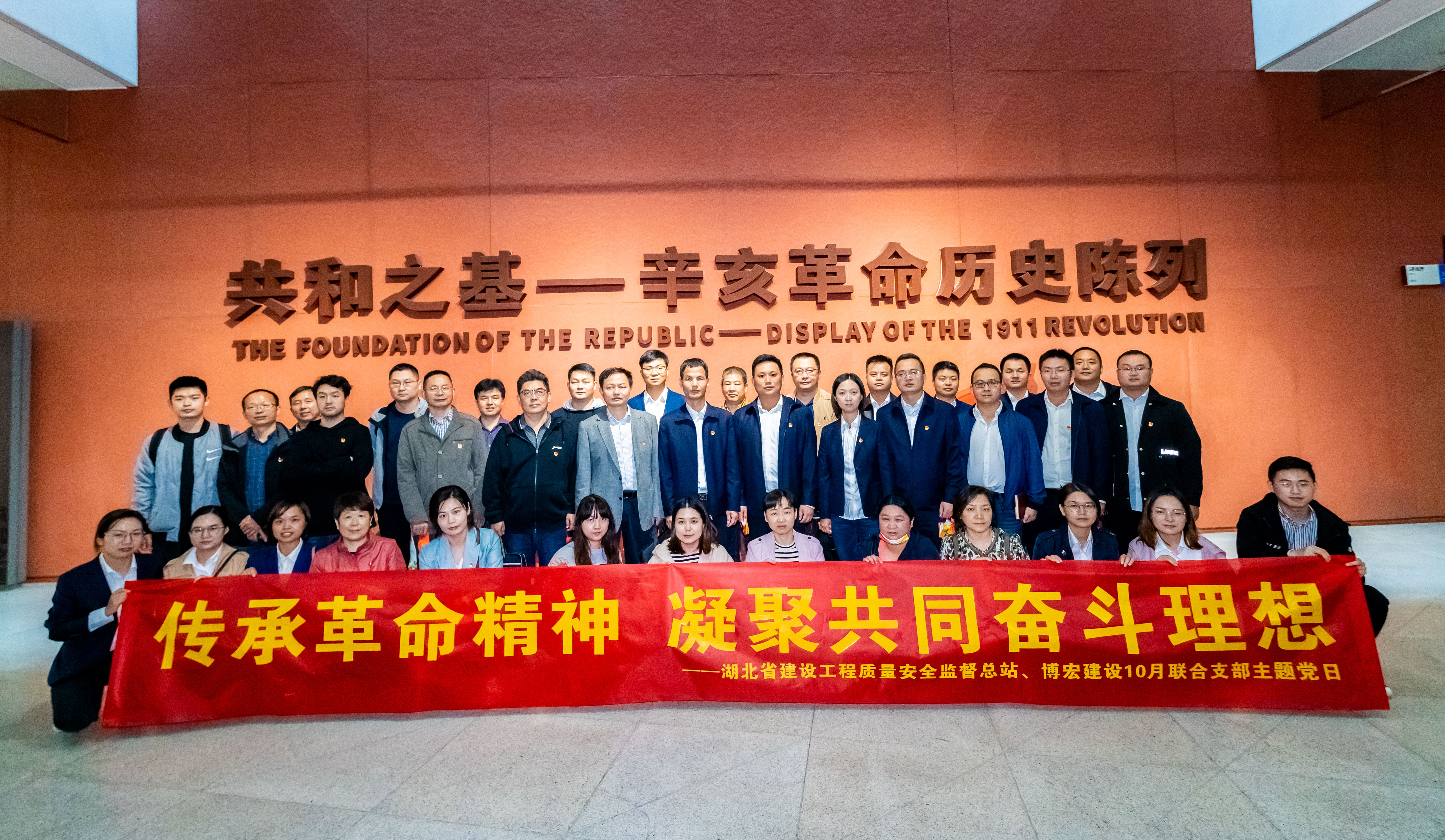 10月14日,湖北省建設工程質量安全監督總站(簡稱“省質安總站”)與博宏建設聯合開展“傳承革命精神,凝聚共同奮斗理想”10月主題黨日活動。省質安總站黨支部書記、站長楊碧華、副站長丁建平、副站長徐建軍,博宏建設黨支部書記、董事長鄒勇,總經理蘇琦、黨支部副書記郭一清、副總經理辛桂華等共計40名黨員同志參與此次活動。