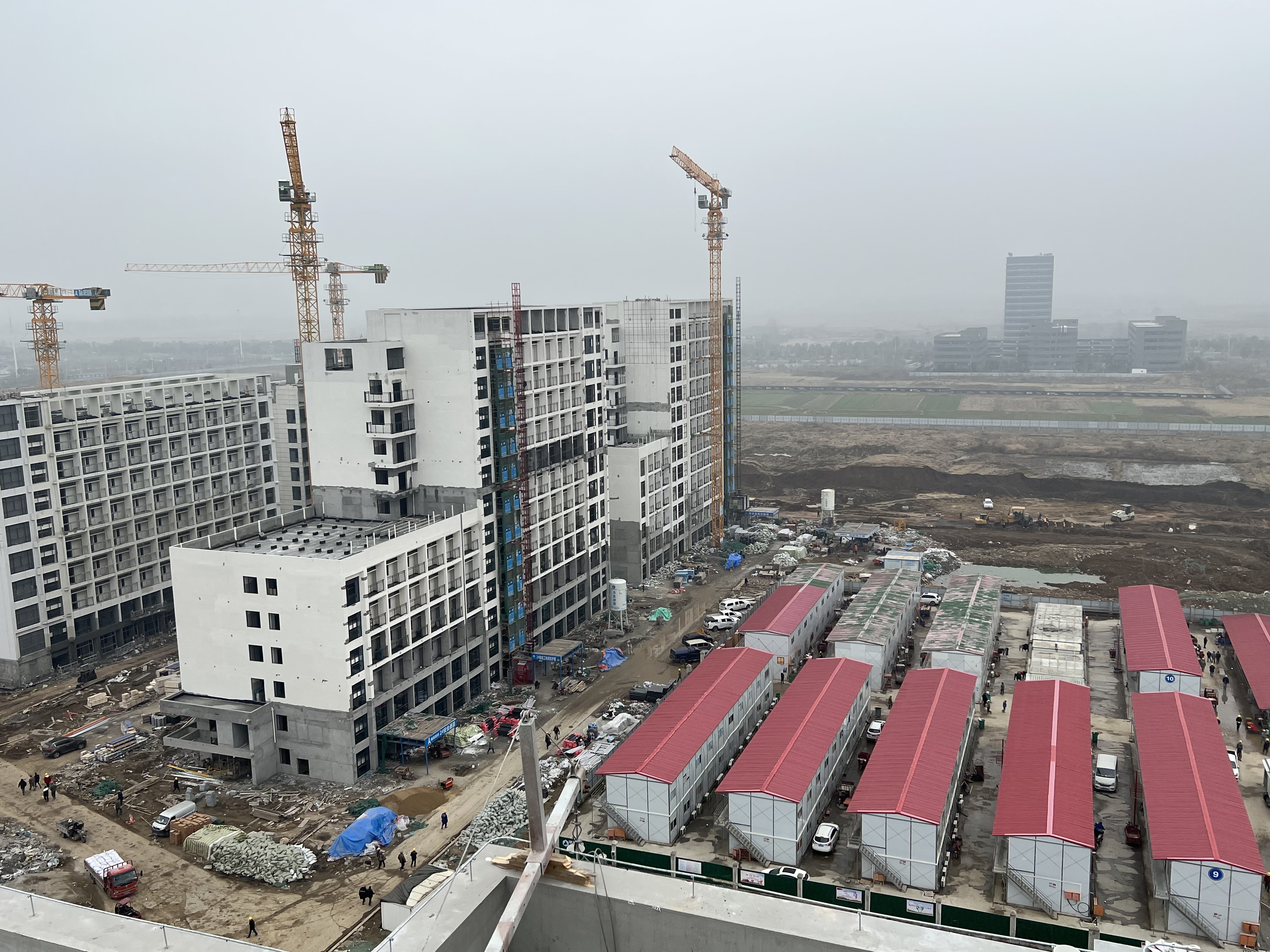 項目部遵循“緊前不緊后”的原則,春節(jié)前,項目部提前做了好春節(jié)期間不停工的相關(guān)部署:確定春節(jié)期間施工內(nèi)容和施工人員;提前將春節(jié)期間施工的保溫地坪材料、屋面磚、黃沙、水泥等材料運送進場;提前聯(lián)系挖機、鏟車以及塔吊等,施工電梯不停工;同時,確保春節(jié)期間項目餐廳正常供餐,并提高工人用餐標(biāo)準(zhǔn),水電工常駐工地,及時處理斷水?dāng)嚯姷奶厥馇闆r,確保項目團隊正常生活不受影響。春節(jié)期間,各班組現(xiàn)場施工人員合計228人、項目部管理人員13人,進行現(xiàn)場水電安裝施工、室內(nèi)抹灰、刮膩子等工序的施工。自年前項目中標(biāo)開始,“起步即沖刺、開工即決戰(zhàn)”的新年奮進號角在項目現(xiàn)場就已經(jīng)吹響。公司第一時間整合資源,抽調(diào)公司精英骨干及多個項目管理團隊,組成“幫幫團”,集中人力和物力進行支援。