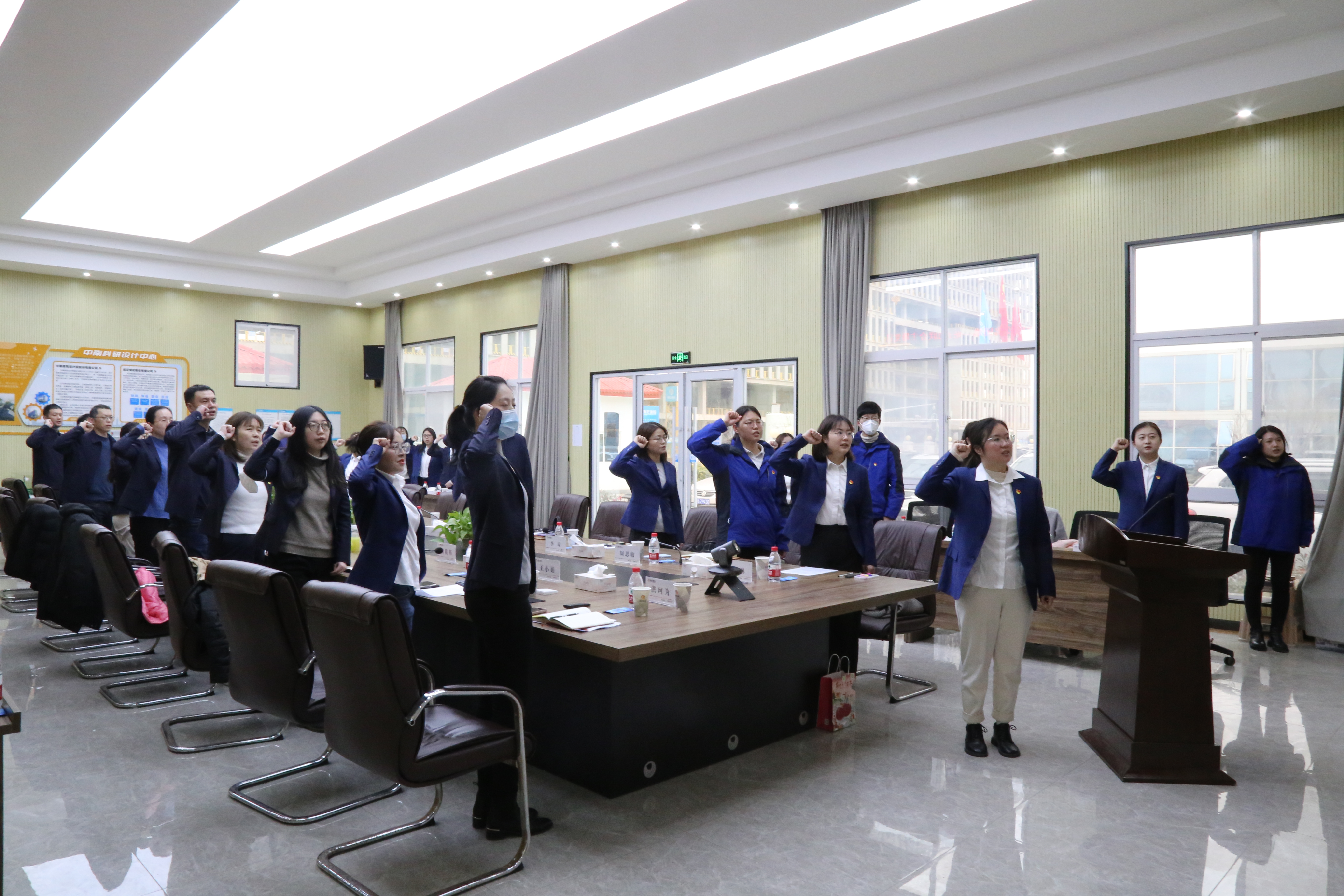 黨員王小娟從現(xiàn)場亮點展示、工程業(yè)績展示、2023年重大節(jié)點項目展示三個維度出發(fā),講述了近年來公司所取得的斐然業(yè)績。風勁帆滿圖新志,砥礪奮進正當時,開工以來,博宏人正以斗志昂揚的姿態(tài)加速推進年后復工復產(chǎn)工作,正如鏗鏘有力的開工誓詞中所說:我們將深推精益建造,踐行完美履約,不忘初心、繼續(xù)前行,精誠協(xié)作、攜手共贏,狠抓工程進度,確保質(zhì)量安全,用拼的姿態(tài)、搶的意識、爭的勁頭,力爭開門紅、確保全年紅!