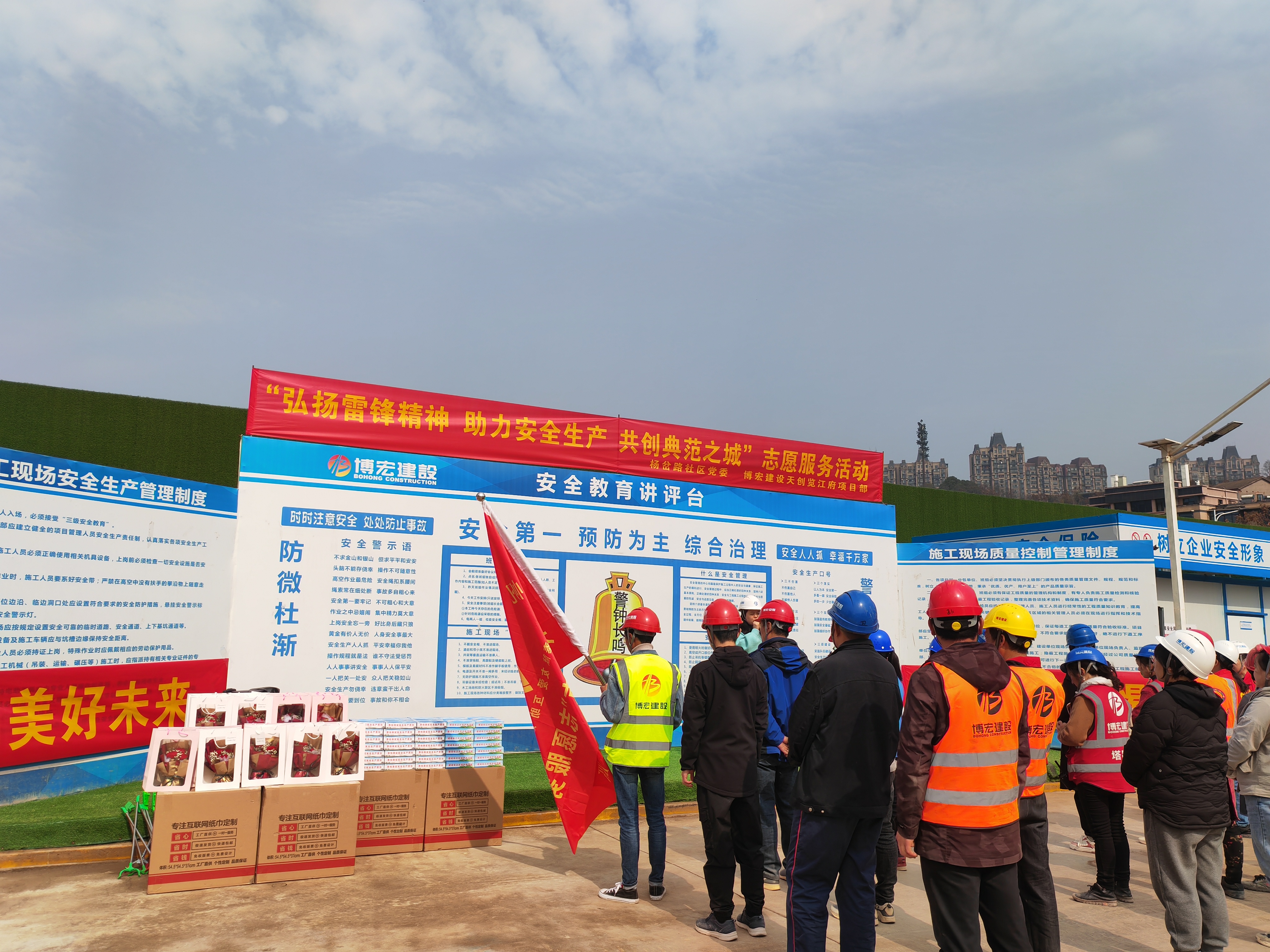 在第60個“學雷鋒紀念日”和“三八”女神節來臨之際,博宏建設集團天創覽江府項目部聯合楊岔路社區黨委、楊帆志愿者服務中心開展“弘揚雷鋒精神,助力安全生產,共創典范之城”主題志愿服務活動,為堅守在項目一線辛勤耕耘的城市建設者們提供多種多樣的便民服務及健康義診,30余名職工代表、農民工代表、社區“守心”醫療志愿者參加活動。