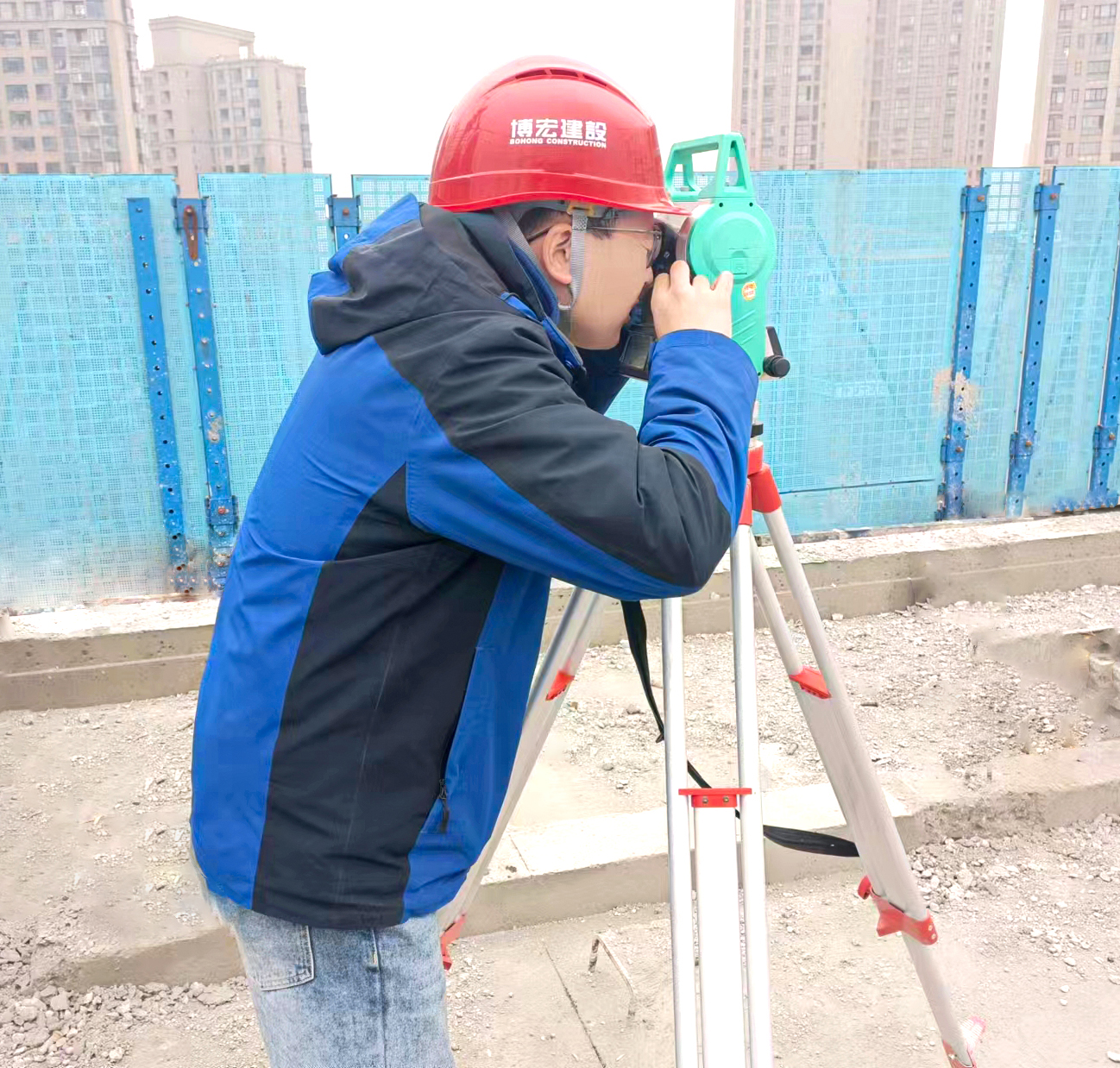 入職第一天,王杰接手的第一個任務是配合同事完成新港臨江匯項目1號樓的放線工作。由于是裝配式建筑,在還未吊裝樓梯的情況下,人員無法從樓梯上至作業(yè)層樓板,王杰他們只能借助爬架爬梯翻到樓板上完成放線工作,在三十米的高空,爬架和結(jié)構(gòu)外邊緣有較大距離,對于初入工地從未接觸過建筑施工現(xiàn)場的王杰來說,這是從未經(jīng)歷過的挑戰(zhàn),嘗試了幾次后,仍然無法完成跨越,同事們也紛紛安慰勸說讓他放棄,好強的他,每每想到放棄,就覺得內(nèi)心不甘,在認真觀察及努力嘗試后,王杰最終克服了內(nèi)心的恐懼,順利登上樓板完成了放線工作。