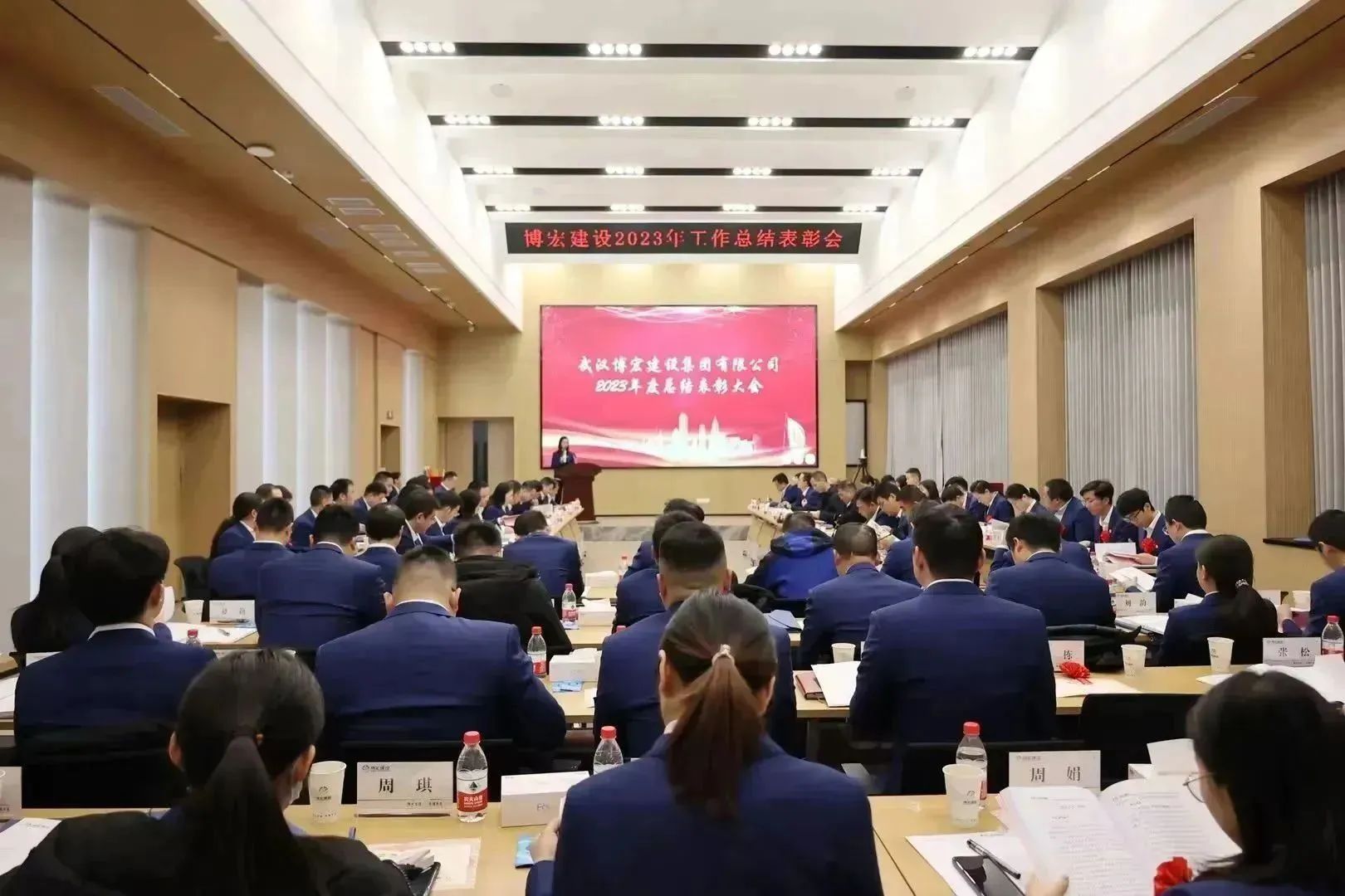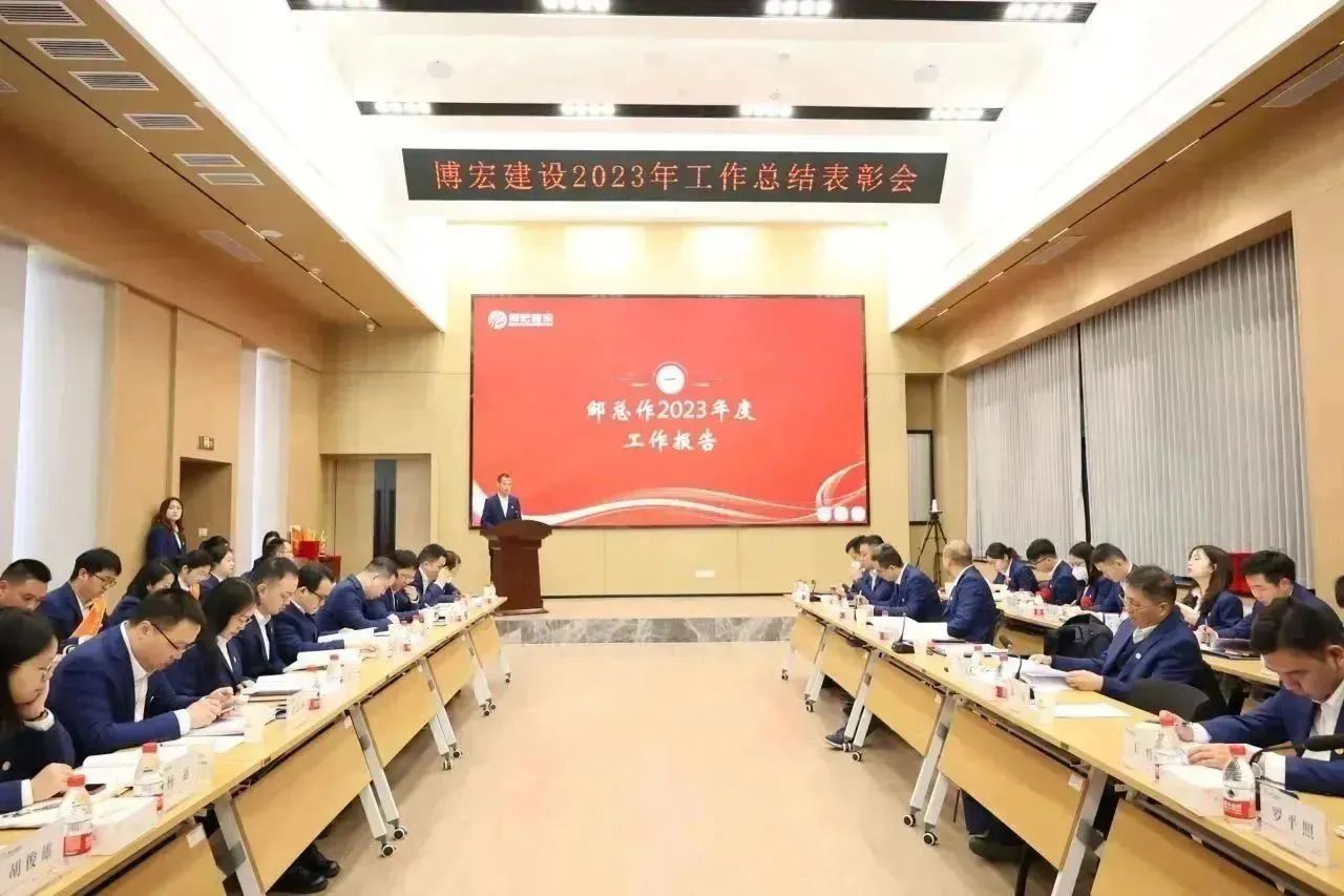 1月26日-27日,博宏建設(shè)2023年工作總結(jié)暨2024年工作研討會(huì)在公司31樓會(huì)議室隆重召開。公司黨委班子、部門負(fù)責(zé)人、項(xiàng)目經(jīng)理和員工代表共84人參加會(huì)議。漢陽市政黨委書記、董事長嚴(yán)悌文受邀出席會(huì)議。會(huì)議由公司黨委副書記郭一清主持。